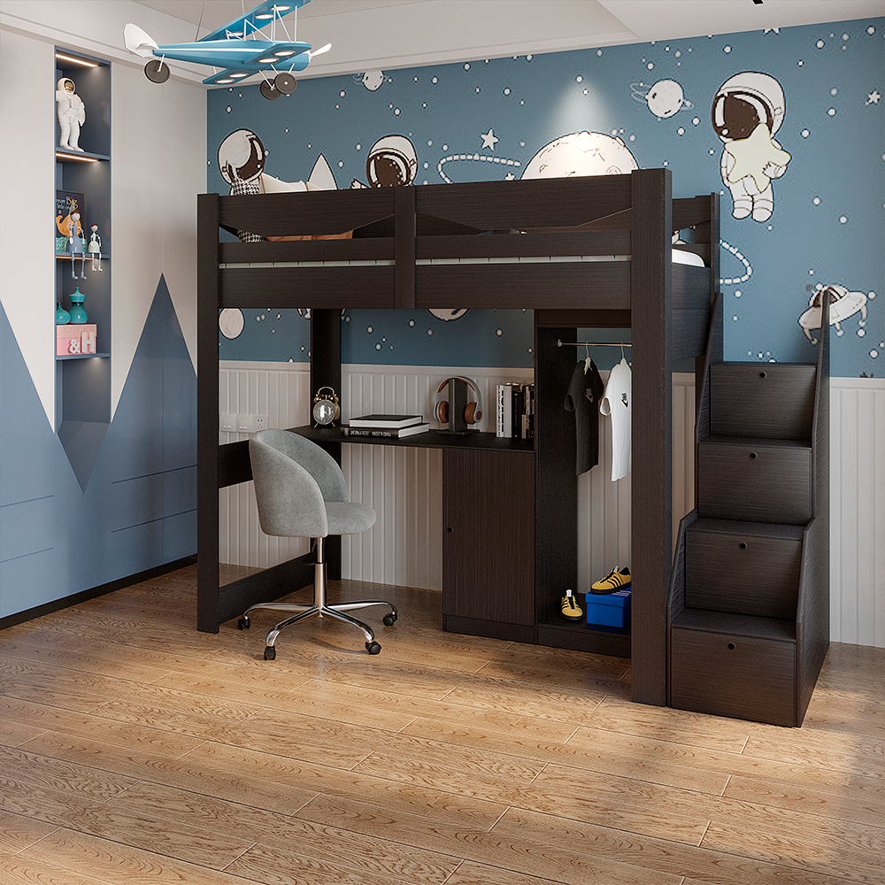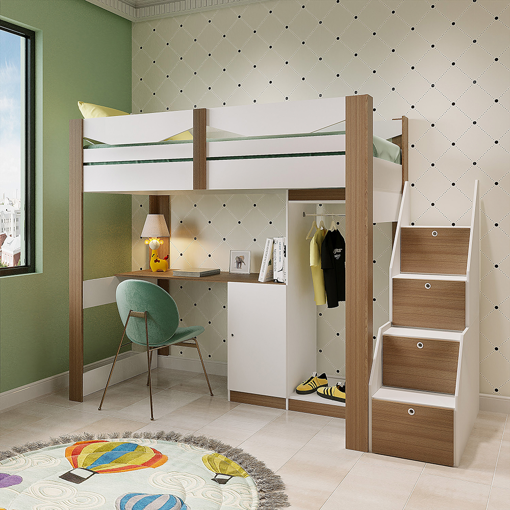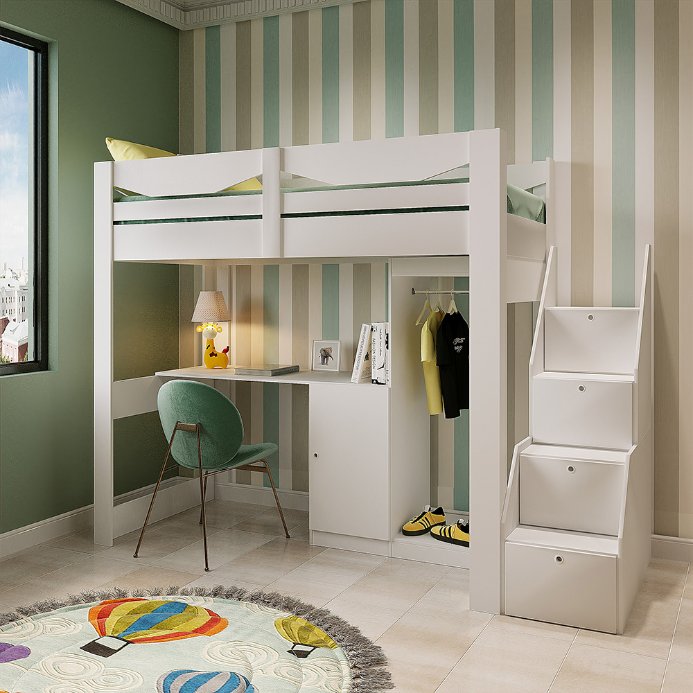 Pensando em ocupar os espaços de forma inteligente e deixar o quarto dos seus filhos mais prático e funcional, a Cama Alta Stella é a escolha perfeita! Conta com uma escada lateral, onde os degraus são nichos com portas basculantes, uma escrivaninha funcional, um armário com uma porta e um armário aberto com cabideiro para organização de roupas e outros itens. Desenvolvida com toda a estrutura em MDP 15 mm e acabamento em Perfect Wood, oferece um design inovador e divertido, onde o quarto será o mais mágico dos lugares!
