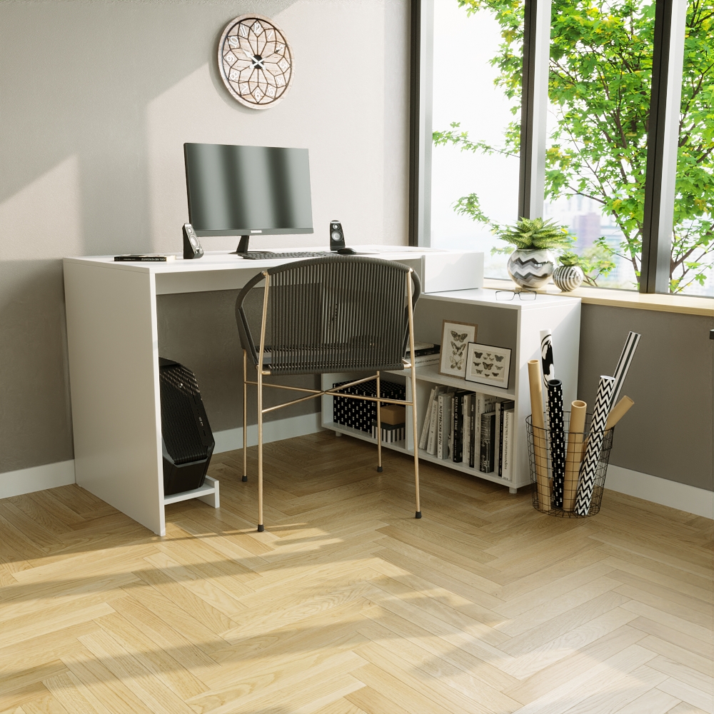 Conteúdo da embalagem: 01 Escrivaninha em L + kit de ferragens + manual de montagem